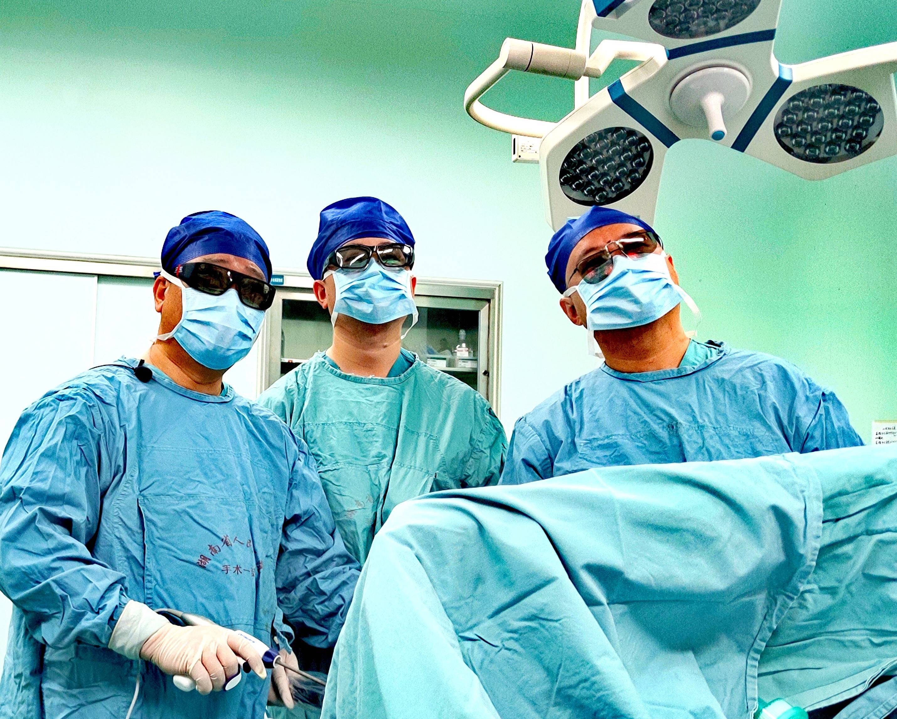 入院后,尹新民教授团队针对患者多次术后腹腔粘连严重、病情复杂的难题,全面研判病情,定制个体化微创治疗方案。手术中,由尹新民教授、朱斯维副教授等组成的微创手术团队运用精细膜解剖技术,精准松解腹腔致密粘连,完整暴露手术区域。随后,手术团队借助双镜联合技术探查取石,同步切除病变组织,重建肝胆肠生命通道,并在麻醉科及护理团队的紧密协作下,历时9小时,仅通过微小穿刺孔便顺利完成复杂手术,避免了传统开腹手术的巨大创伤。
