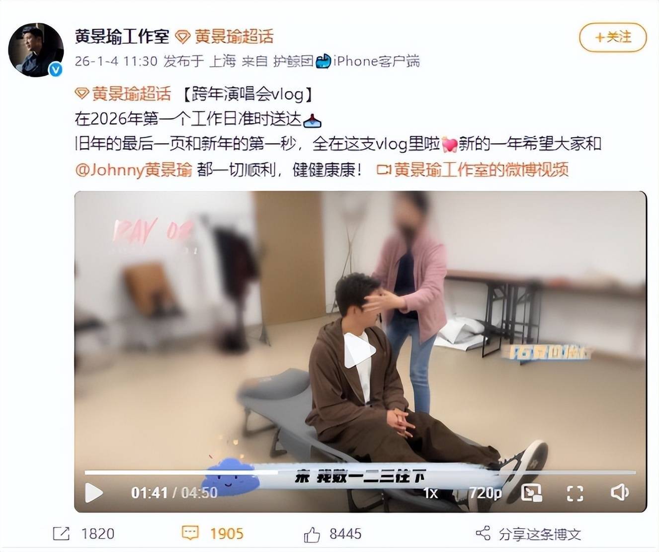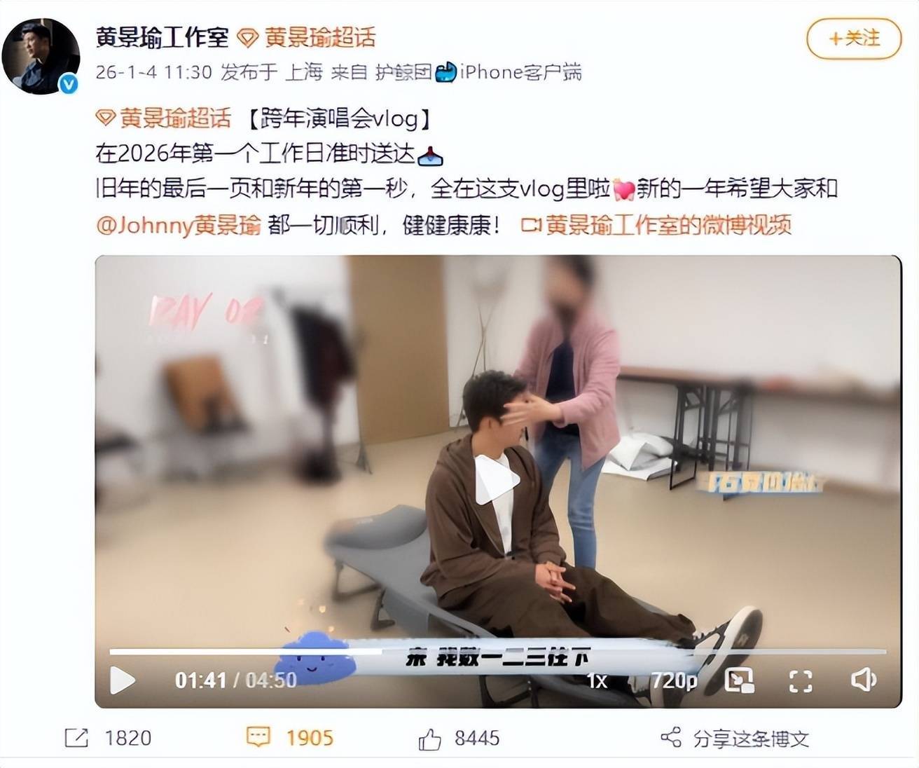 在跨年夜后台,黄景瑜突发耳石症,头部轻微转动就引发强烈的眩晕。