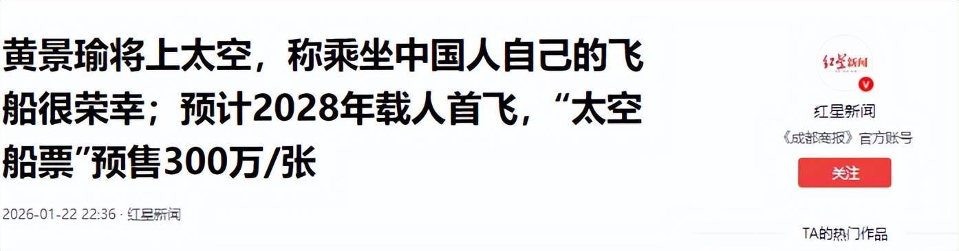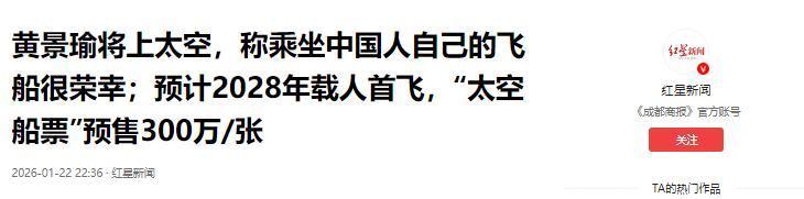 2026年1月22日,黄景瑜正式官宣成为009号太空游客。